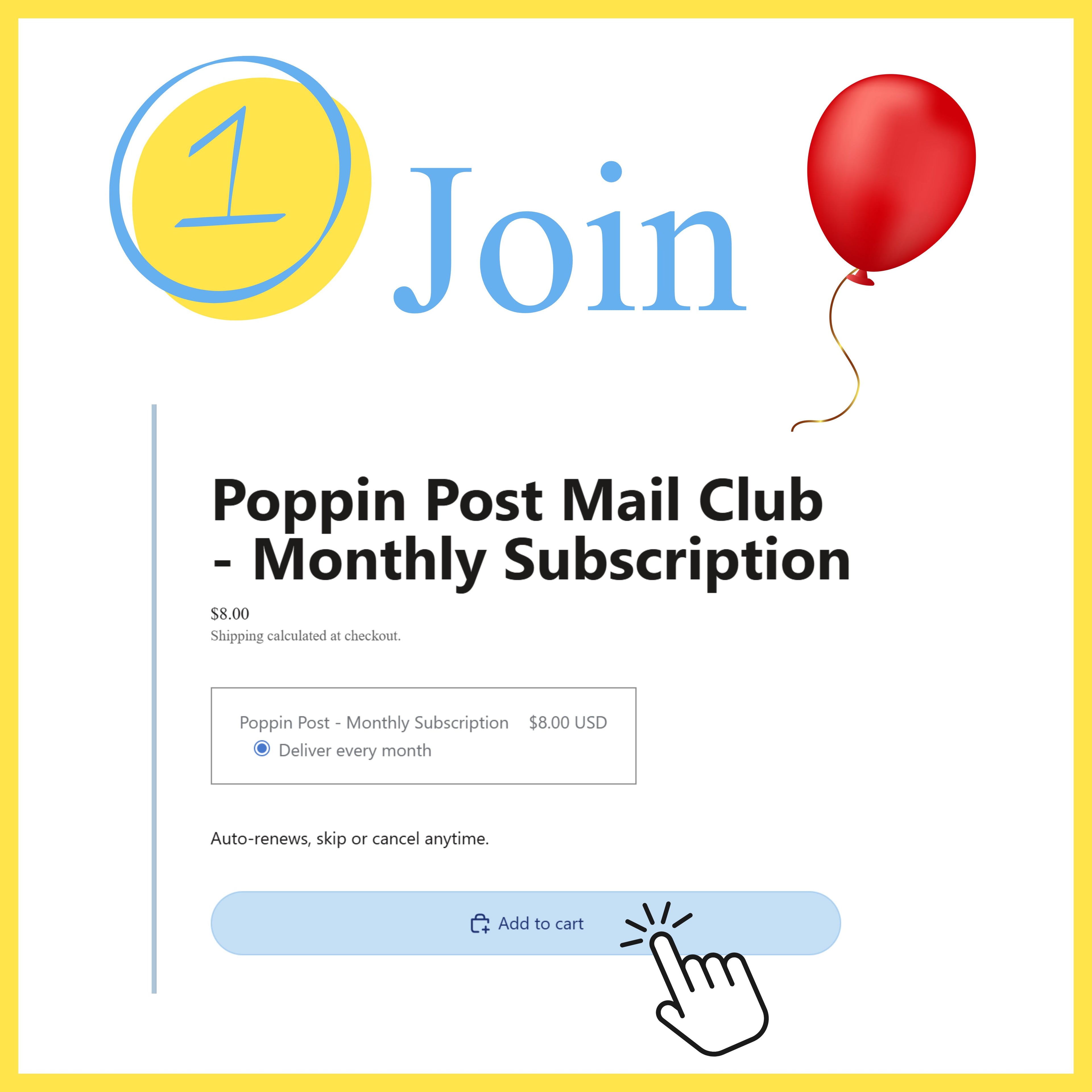 Poppin Post brings the joy back of receiving mail the old-fashioned way, with a monthly art delivery: art, collectible surprise and personal letter. Simple, meaningful, and made to brighten both your day and your mailbox every month.